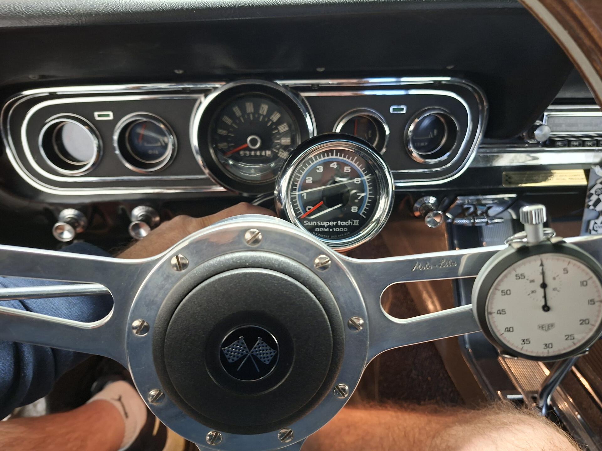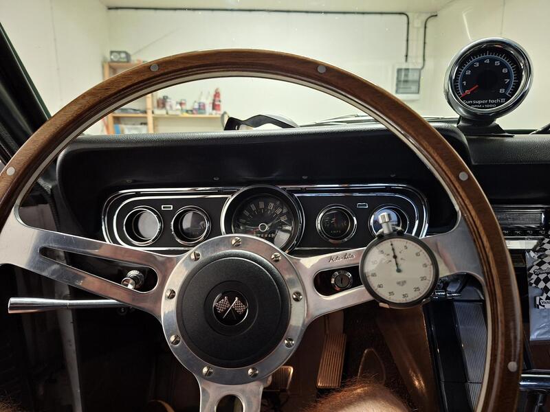 Har bara varit ute och åkt och väntar med skruvandet ett tag. Kollade vikten på mina 6x14 Torq Thrust jämfört med en original stålfälg och den kändes blytung. Nu hade jag ingen våg, men det måste nog röra sig uppskattningsvis om minst 2,5 kilos skillnad. Tyvärr inga napp på fälgar än. Likaså verkar det trögt att hitta en Edelbrock 1404, men i värsta fall får jag väl handla en ny. Och manuella lådor verkar vara slut, fast det borde ligga en hel del lådor i garagen som bara väntar på att bli använda. Desto roligare är det att jakten på varvräknare är över. Det blev en Sun Super Tach. Visserligen är den inte från 66, utan av senare årsmodell, men det får duga, den ser ju ändå lite old-school. Så nu ska jag bara avgöra om den ska sitta på rattstången eller pryda sin plats ovanpå instrumentbrädan och lite vinklad mot förarplatsen. Det lutar åt det senare alternativet.