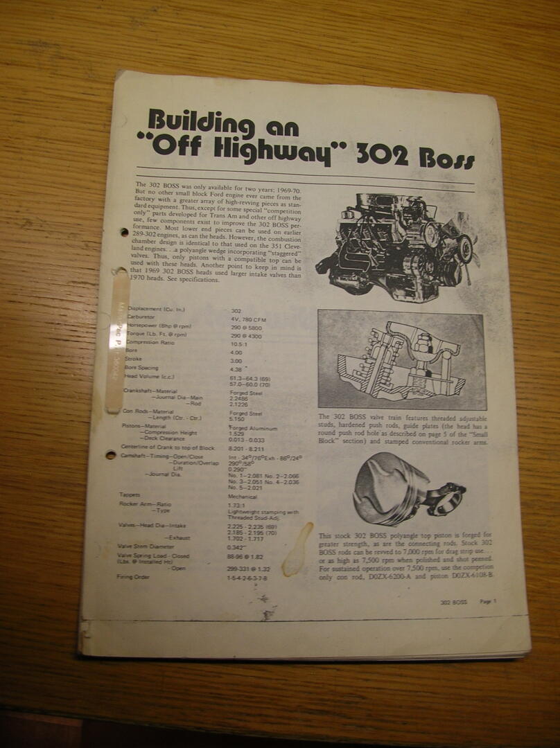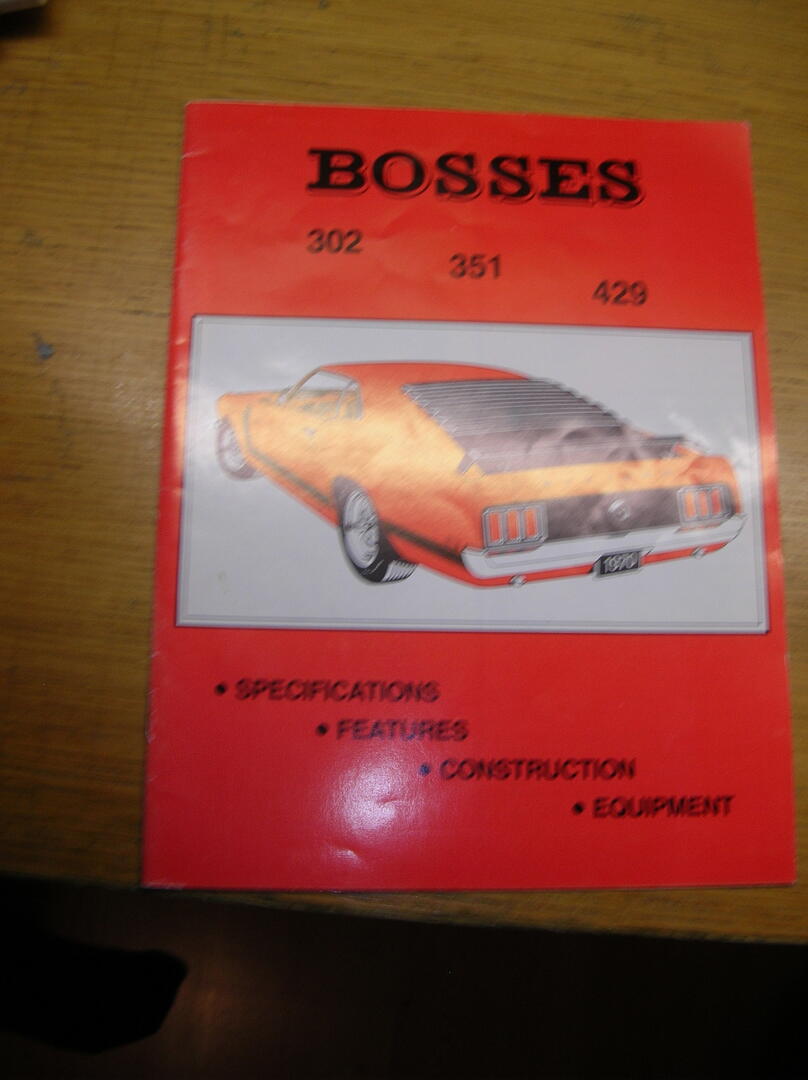 Mustang Boss 302 ( by Donald farr ) 114 sidor 500:- Bosses 302 351 429 30 sidor 325:- Building an " off highway 302 Boss 24 häftade sidor 200:- 1970 Performance buyer´s digest 15 sidor 250:- 70 Ford Mustang illustrated facts Book 34 sidor 200:- Ny instruktions bok 1970 Ford Mustang 575:- Thomas Sundqvist Motala 0141-522 69